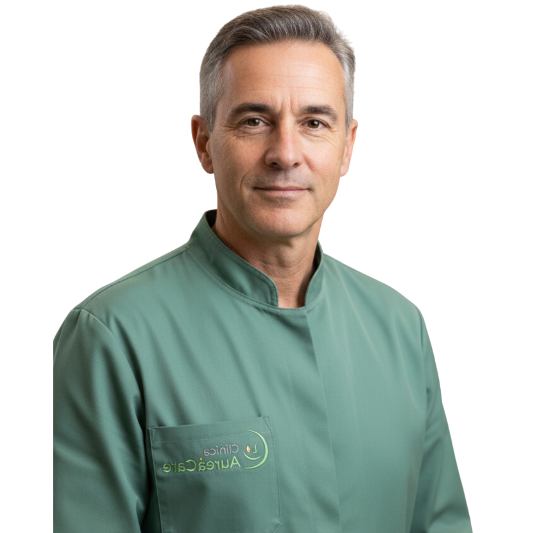 Com uma vasta experiência clínica, o Dr. Ricardo Almeida lidera a prática de medicina dentária na Aurea Care, combinando rigor científico, tecnologia avançada e uma abordagem humana. Especialista em implantologia e reabilitação oral, dedica-se a proporcionar soluções seguras, funcionais e duradouras, sempre focado no bem-estar e na confiança dos seus pacientes.
